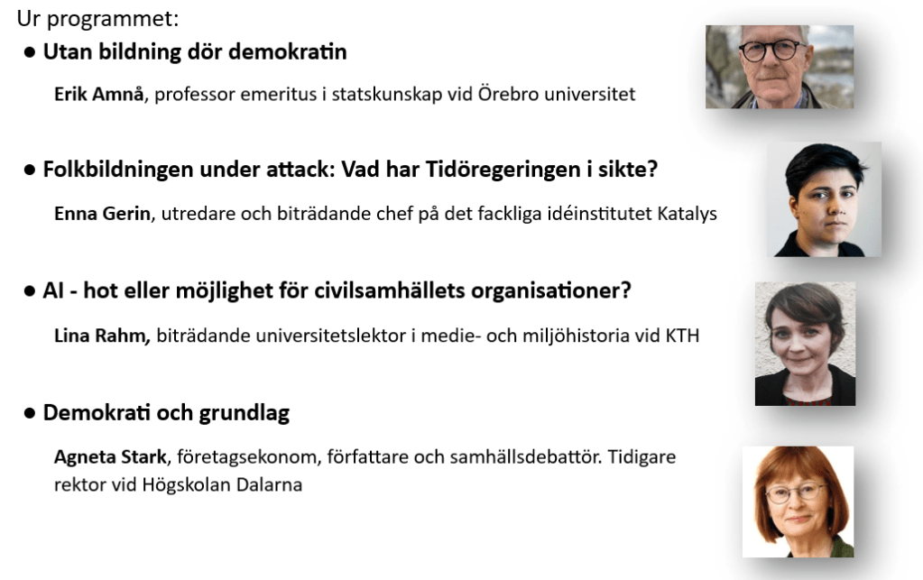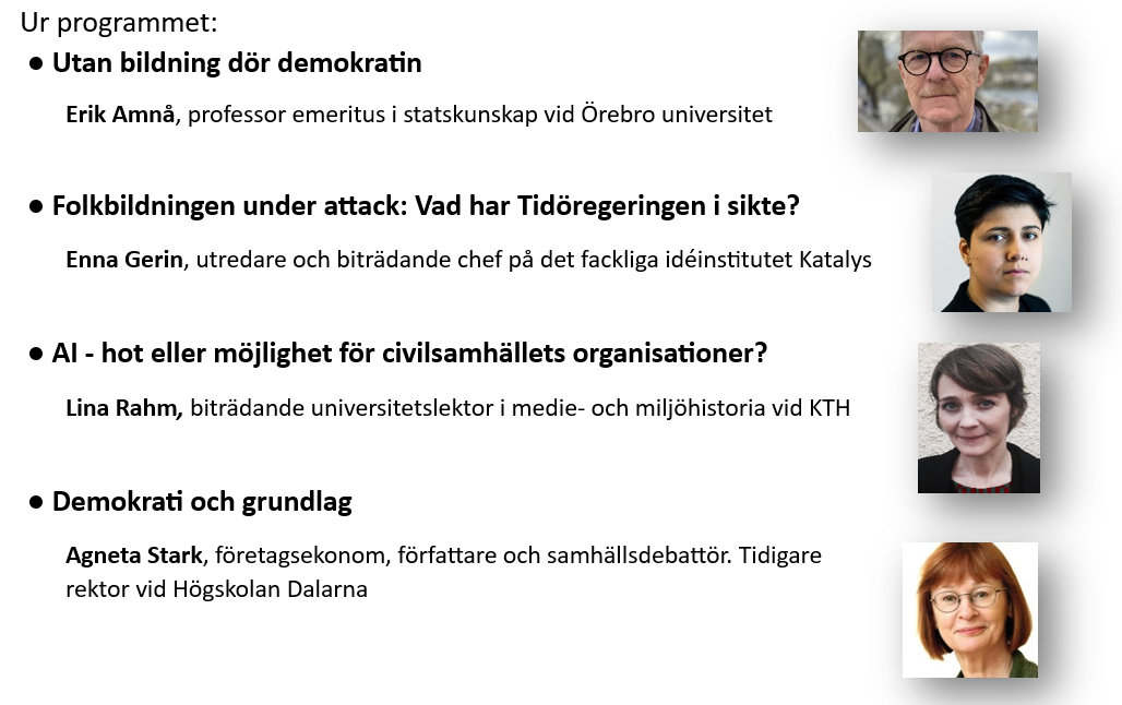 Dagen arrangeras av: Svenska Sällskapet för Nykterhet och Folkbildning, Centrum för Civilsamhällesforskning vid Marie Cederschiölds högskola, Tollare folkhögskola och Föreningen för folkbildningsforskning med stöd av Stockholms Arbetareinstitutsförening.